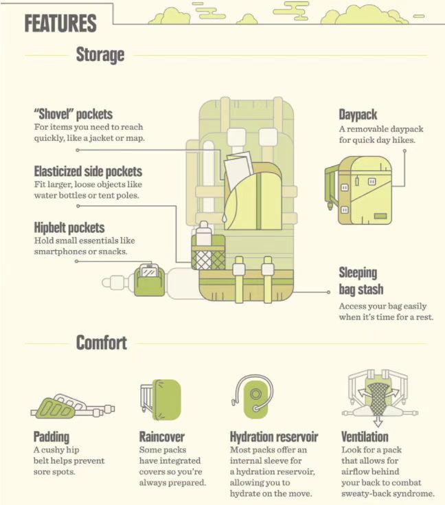Here are the main features you have to look for when picking out a backpack according to your needs:
