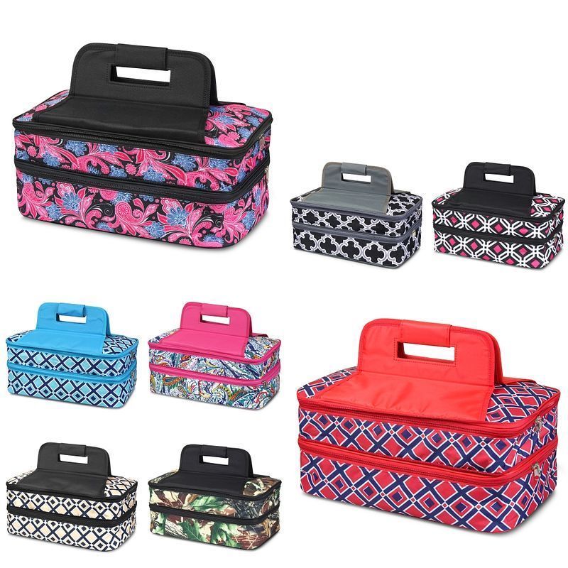 This double-compartment luggage is available in a variety of prints and colors to match your style and even features an exterior pocket for utensils, napkins, and more. The comfortable handle cover makes it easy to carry, whether you plan to keep a plate or two inside.